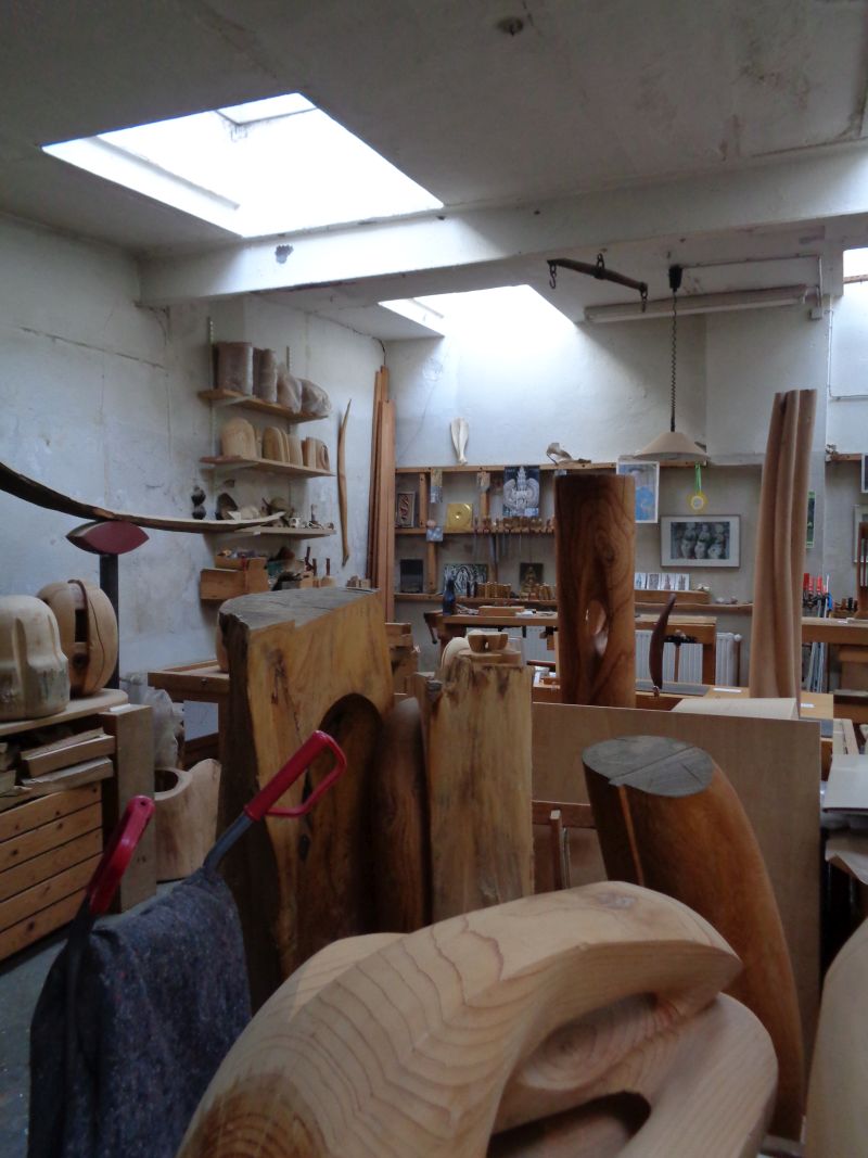 „Beim Skulptieren lege ich im Holz Schichten frei, indem ich von außen nach innen arbeite, es ist eine Reise zum Kern im Dialog mit dem Material. Gelegentlich habe ich mit Fundstücken gearbeitet, die ich formal wenig verändert sondern vielmehr entdeckt und inszeniert habe („Natur-Denk-mal“). Meine Skulpturen laden dazu ein, be-griffen zu werden. Berührung und Berührbarkeit sind mir wichtig: Nähe, Wärme, Stabilität. Auch musikalisches Erleben, überhaupt Klänge, wirken in meine Arbeit hinein, was sich in Titeln niederschlägt (Klangstele).“