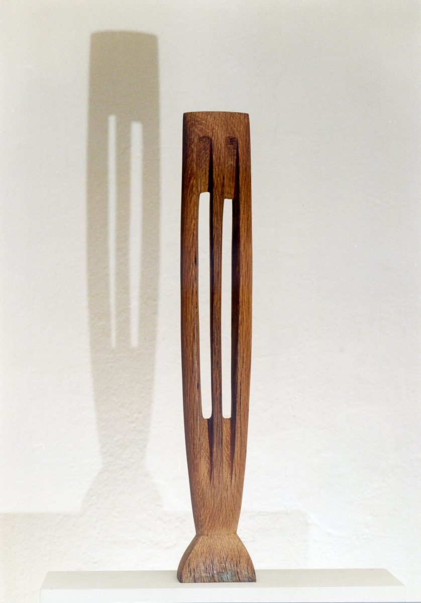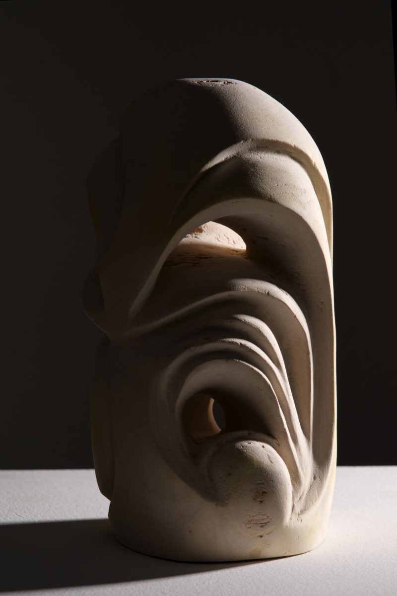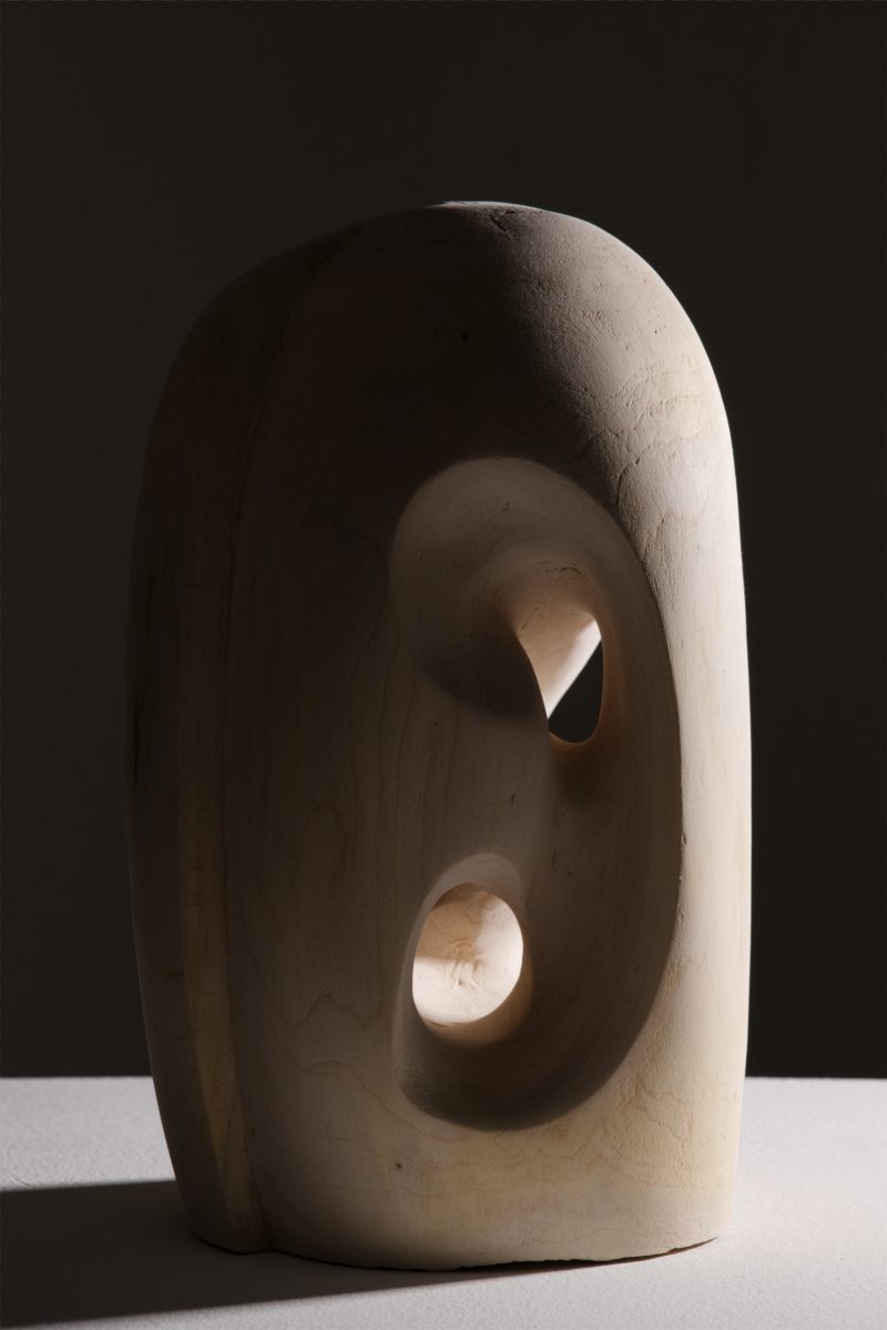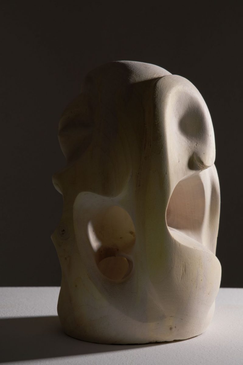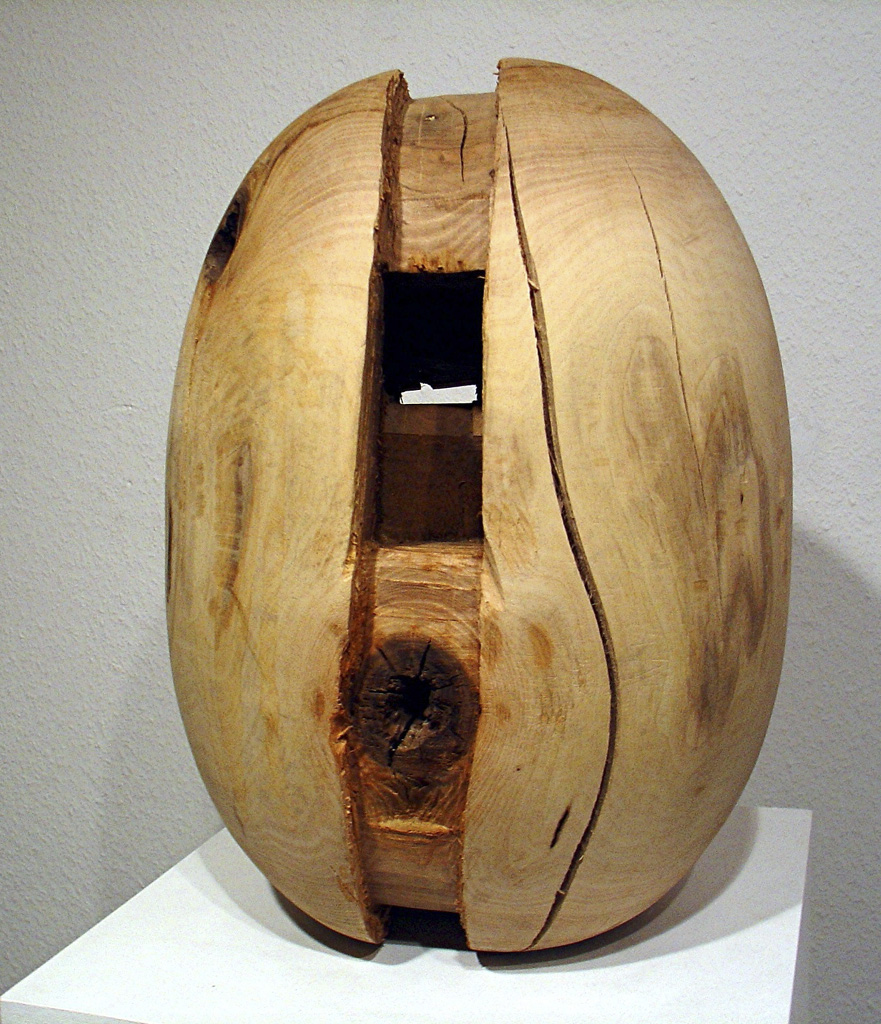 „Ihre Skulpturen aus Nussholz ähneln lebendigen Wesen, die es nicht nur zu betrachten, sondern auch zu ertasten gilt. Sie sind durch Aushöhlungen lichtdurchflutet und strahlen eine zentrierte Bewegung aus.“